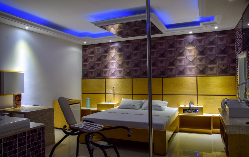 Canais Eróticos, wifi, ar, ducha, frigobar, som, TV, hidro, cadeira erótica